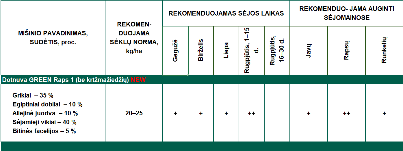 Sideralinių augalų mišinys Dotnuva GREEN Raps (be kryžmažiedžių).