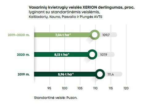 Vidutinis baltymų kiekis buvo 12,8 proc., krakmolo –nuo 68,9 proc. grūdų natūrinis svoris – 747,8 g l-1.